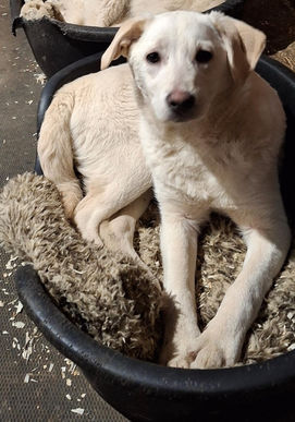 Optisch sehe ich aus wie ein kleiner Labbi-Mix, meine Eltern kennt man nicht. Ich werde vermutlich mittelgroß (geschätzt ca. 50–55 cm Schulterhöhe).